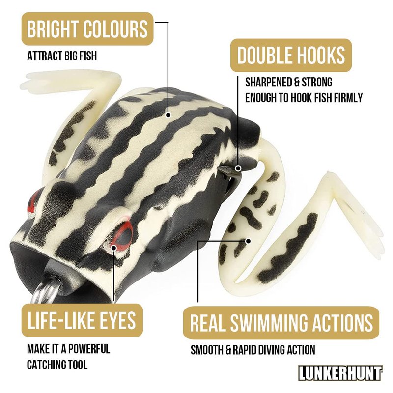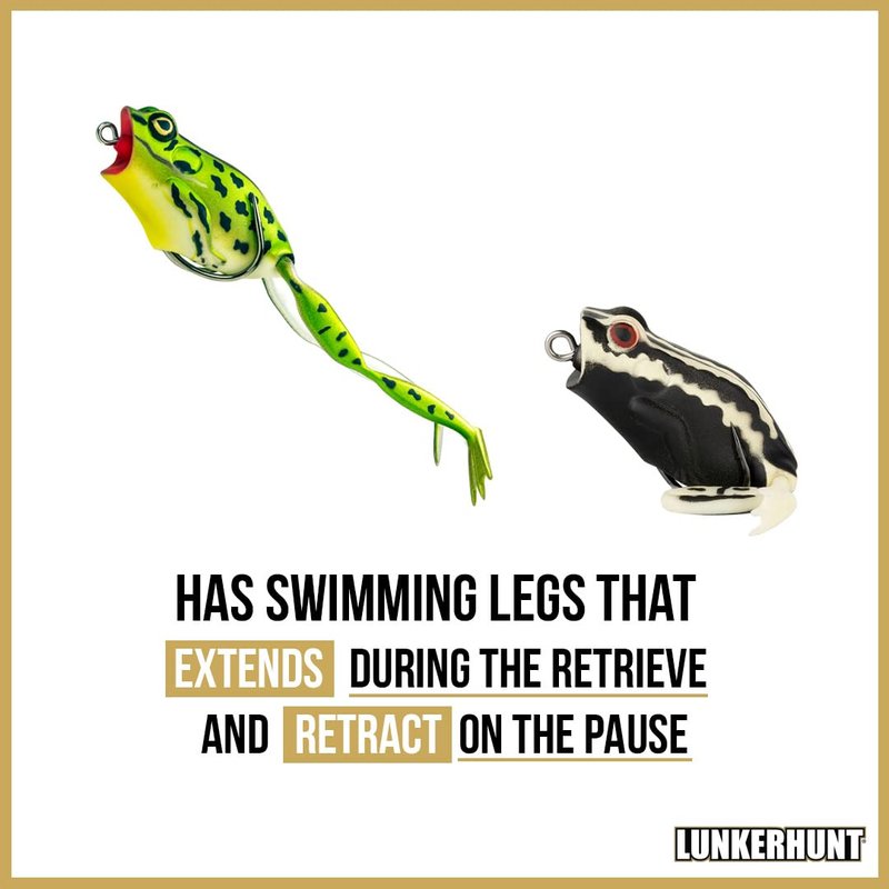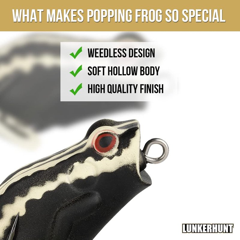 - ✅ POPPING FROG creates AMAZING TOPWATER ACTION to ATTRACT BASS FISH: The Lunkerhunt Popping Frog calls fish in by creating a surface disturbance and can be worked along edges, through grass, in pockets and on open water.