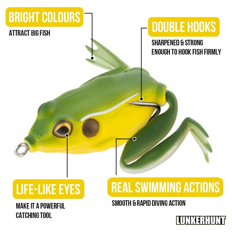 - ✅ LUNKER FROG (bull frog color) is the MOST LIFE-LIKE FROG available in the market. MAKES CATCHING FISH EASIER due to behaving just like a living frog would in the water. The frog drops down a little into the water perfectly replicating the action of a frog / bullfrog