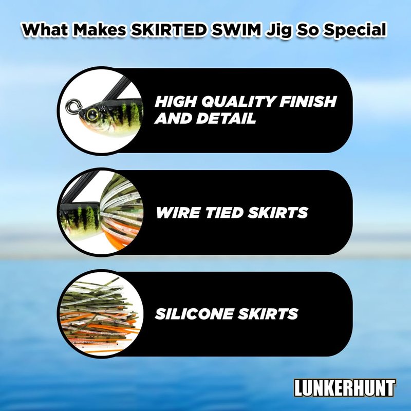 - PERFECT FRESHWATER BAIT: The Lunkerhunt Natural Skirted Swim Jigs are designed to mimic the baitfish that is found in most freshwater lakes.