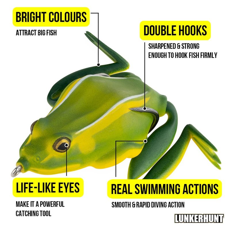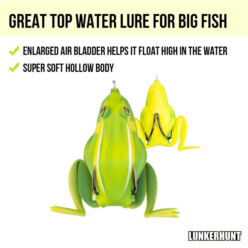 - ✅ AWARD WINNING Frog Lure by ICAST is recognized as the best and most durable fishing lure to battle with big fish. Millions of Anglers Are Using LUNKERHUNT combat frog lure. Get Yours today