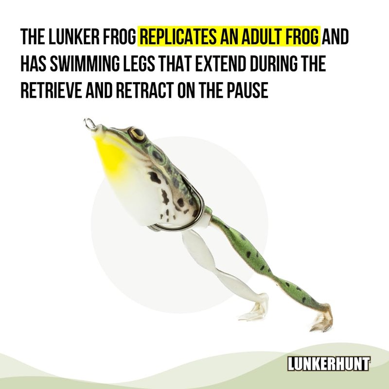 - ✅ HAS SWIMMING LEGS that makes this fishing frog lure SO UNIQUE. The LEGS EXTEND & RETRACT that replicates like a LIFE FROG. Lunker Frog has swimming legs that extend during the retrieve and retract on the pause.