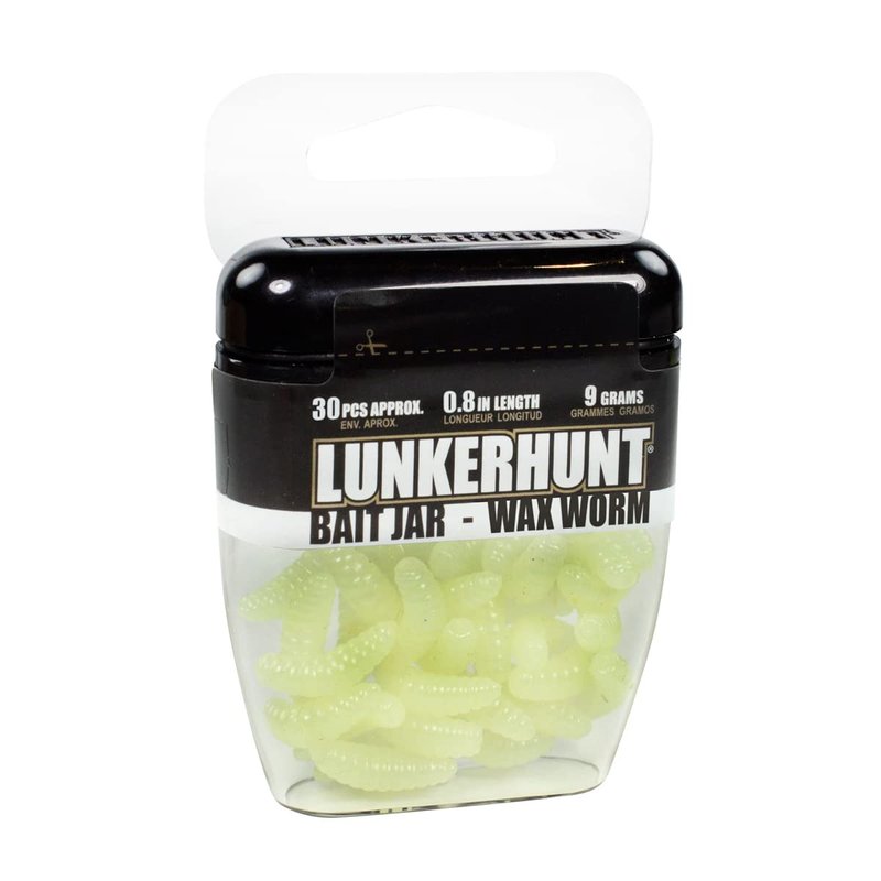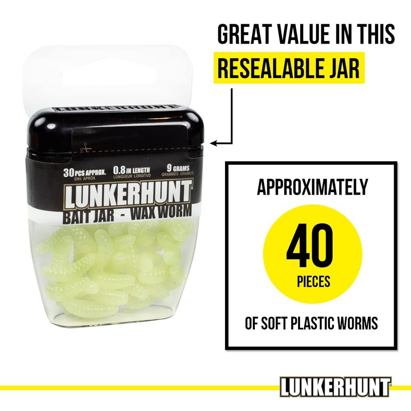 LUNKERHUNT Wax Worm Fishing Bait Jar with Unique Attractant | Durable Wax Worms for Fishing Bass, Fishing Lures Trout and Pike (Glow)
