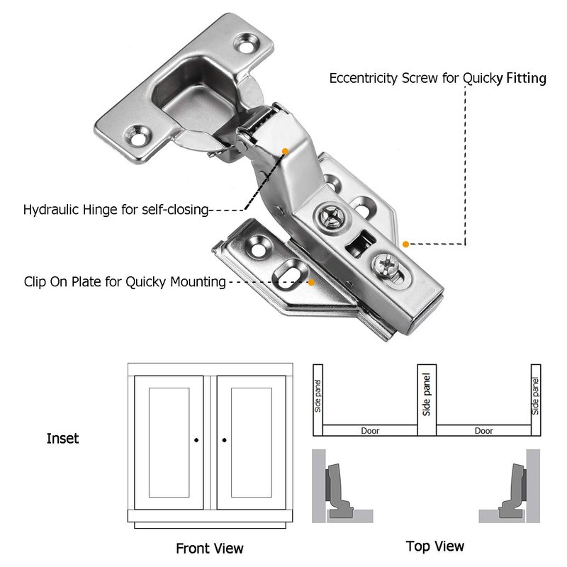 - Intended for Frameless cabinet.110 degree Opening angle.