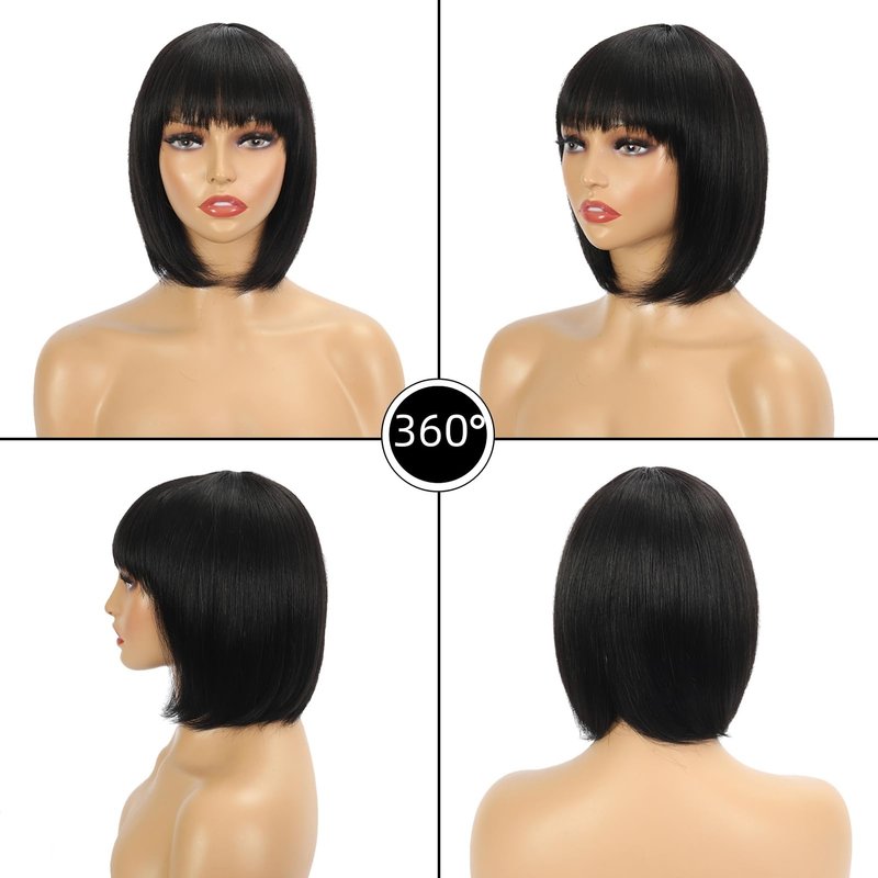 - 【Wig Style】: Short Straight Bob Wig With Bangs, Brazilian Virgin Human Hair Wigs, Glueless Machine Made Bob Wigs, 150% Density None Lace Front Wigs, Short Bob Wigs For Black Women.