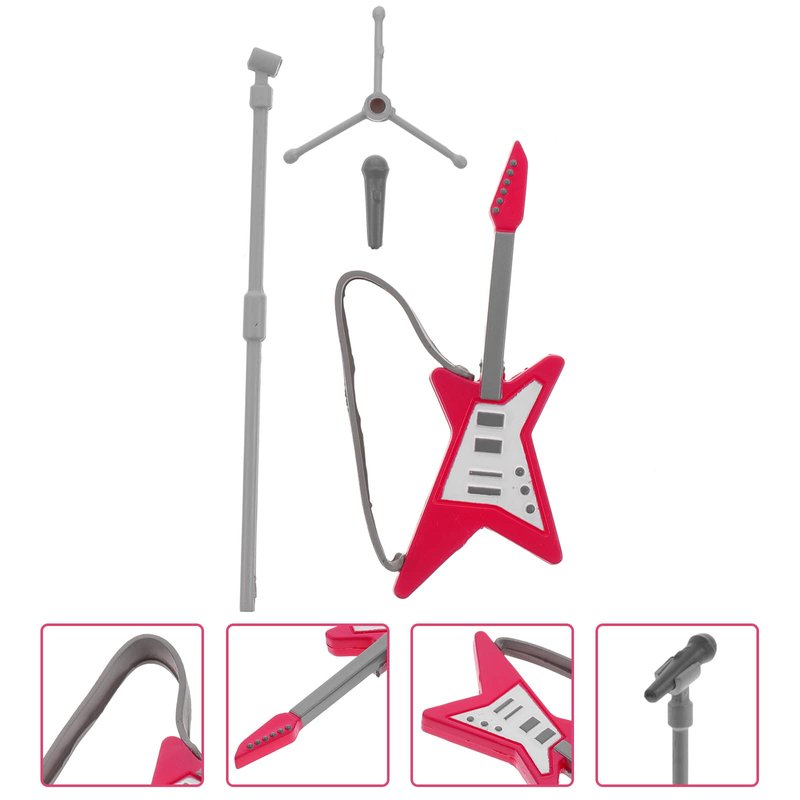 - Miniature Electric Guitar Set: This set includes two miniature musical instruments - a mini electric guitar and a fake microphone. These 1/12 scale dollhouse accessories are perfect for adding a musical touch to your miniature world.