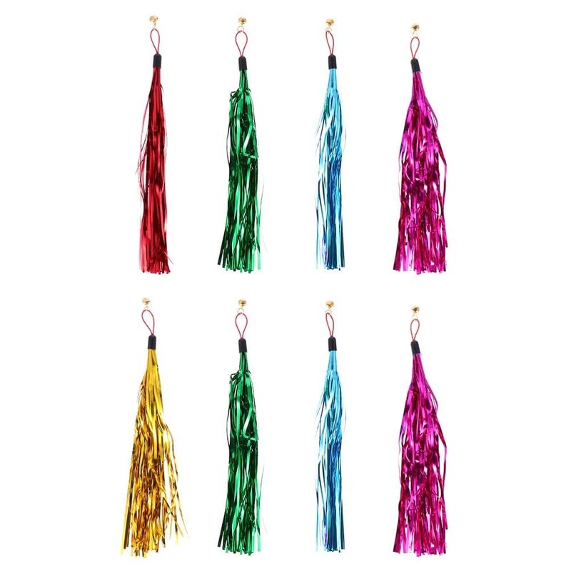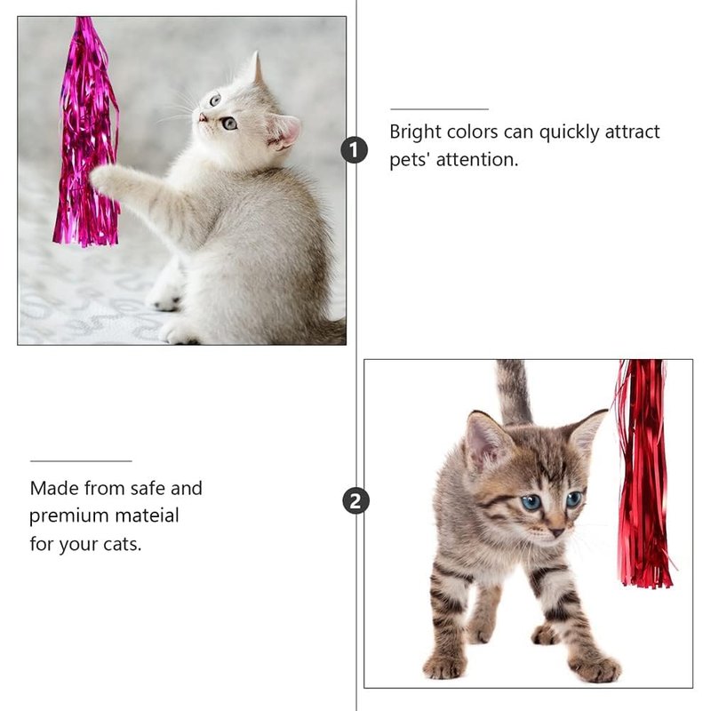 LUOZZY 8 Pcs Cat Teaser Wand Replacement with Bell Metallic Foil Tassel Cat Wand Toys Interactive Catcher Teaser for Pet, Random Color