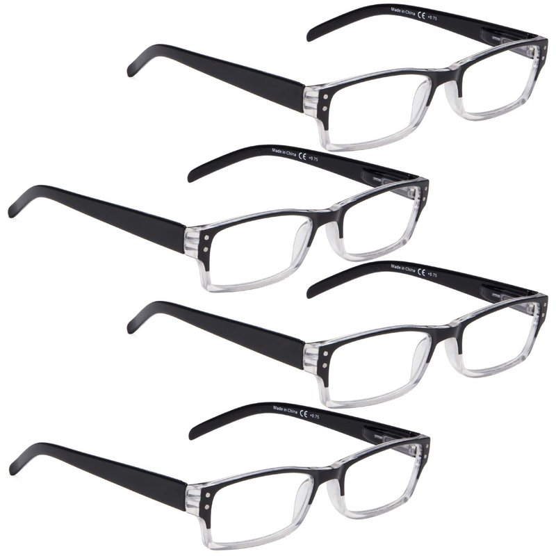 LUR READING GLASSES 4 pack Two-color frame Readers (BlackClear)