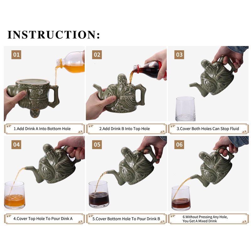 - Old Man Exterior:People may doubt about the figure of this teapot, and who is this old man? He is one of Eight Immortals of ancient Figures in Chinese Myths, and he represents God of longevity. People believes that he could bring wellness and wealth, LURRIER hope this teapot could also bring you extra joy to your family.