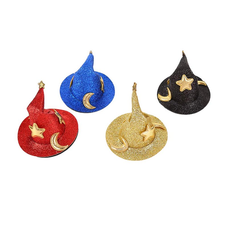 Lurrose 4pcs Mini Top Hat Hair Clips Shining Star Moon Halloween Witch Hat Flet Hairpins Hair Barrettes Hair Accessories for Party Performance Props