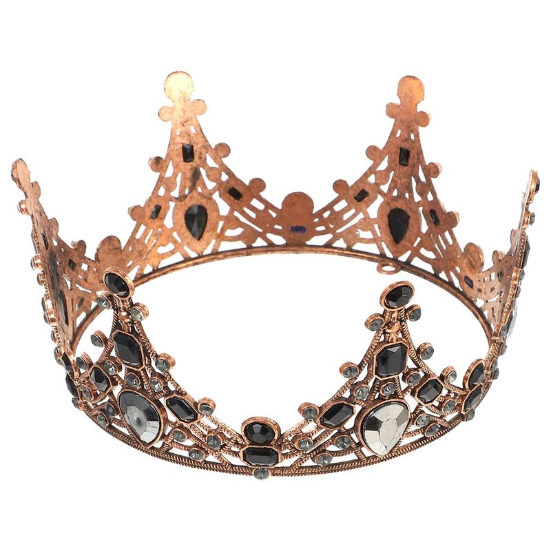 Lurrose Baroque Queen Crown Bride Wedding Vintage Rhinestones Crown Headdress Hair Accessory for Women Prom Halloween Pageant