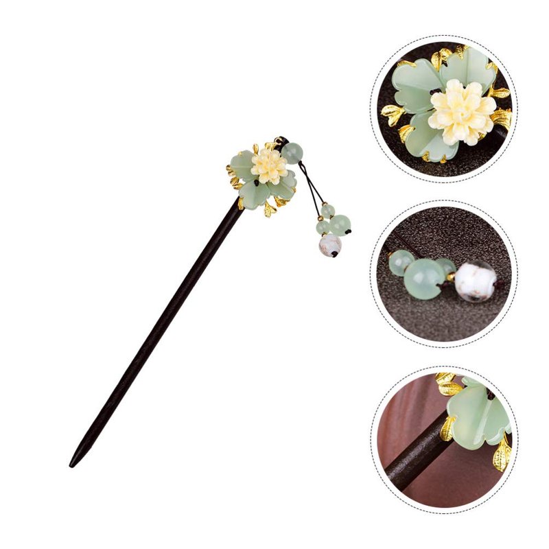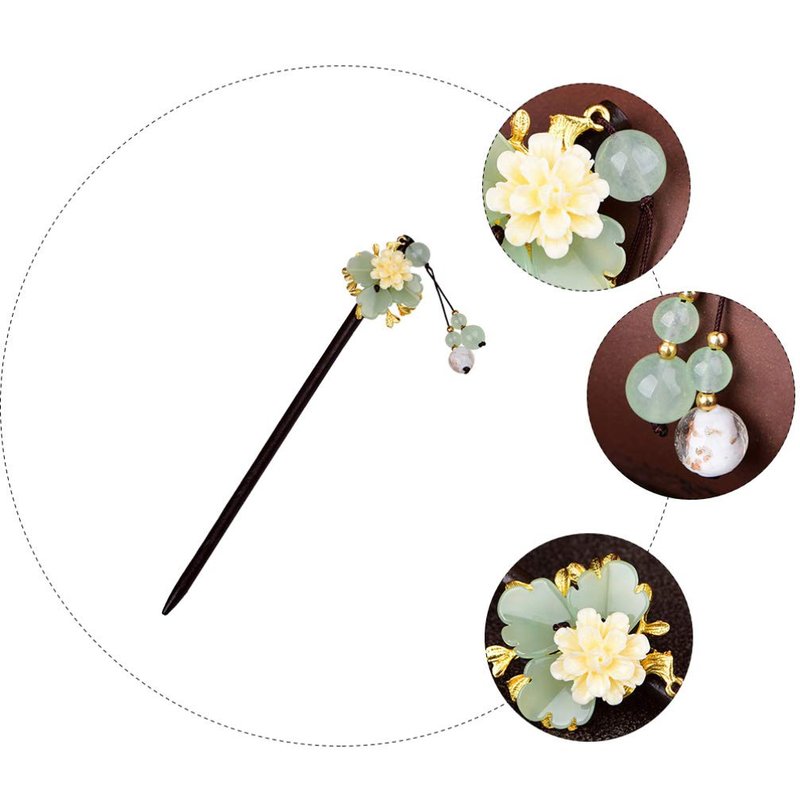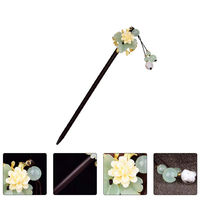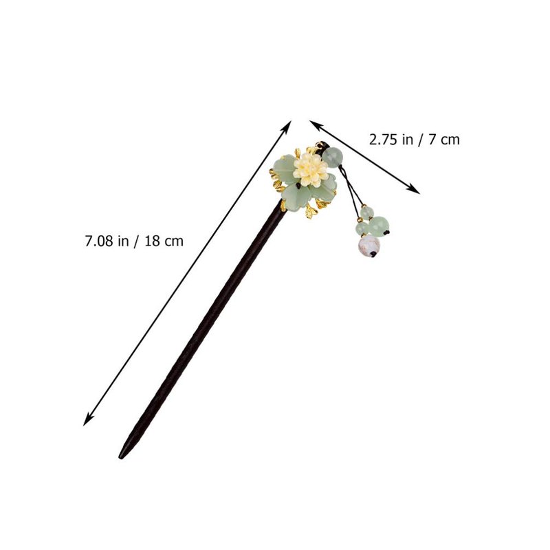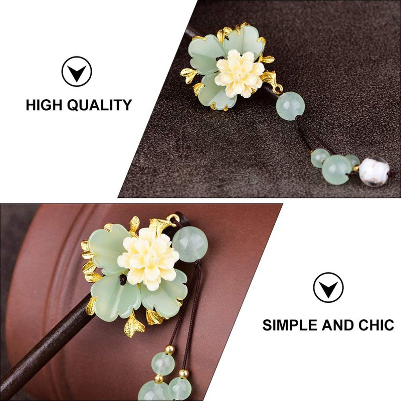 Lurrose Hairpin Wooden Hair Stick Retro Chinese Resin Flower Tassel Classical Feminine Temperament Bride Kimono Hair Accessories Kanzashi Hair Ornament Decor