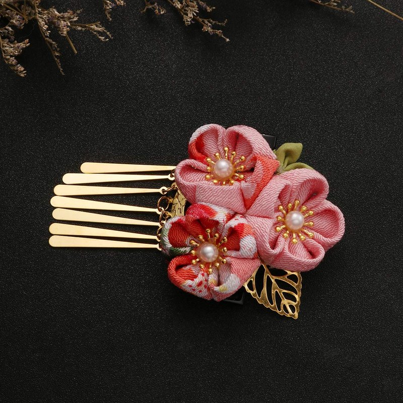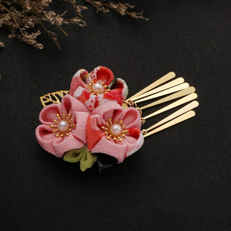 Lurrose Japanese Kimono Flower Hair Clip Kimono Hair Accessories Flower Hair Tie Band Clip for Women Girls Chinese Hair Decor (Pink)