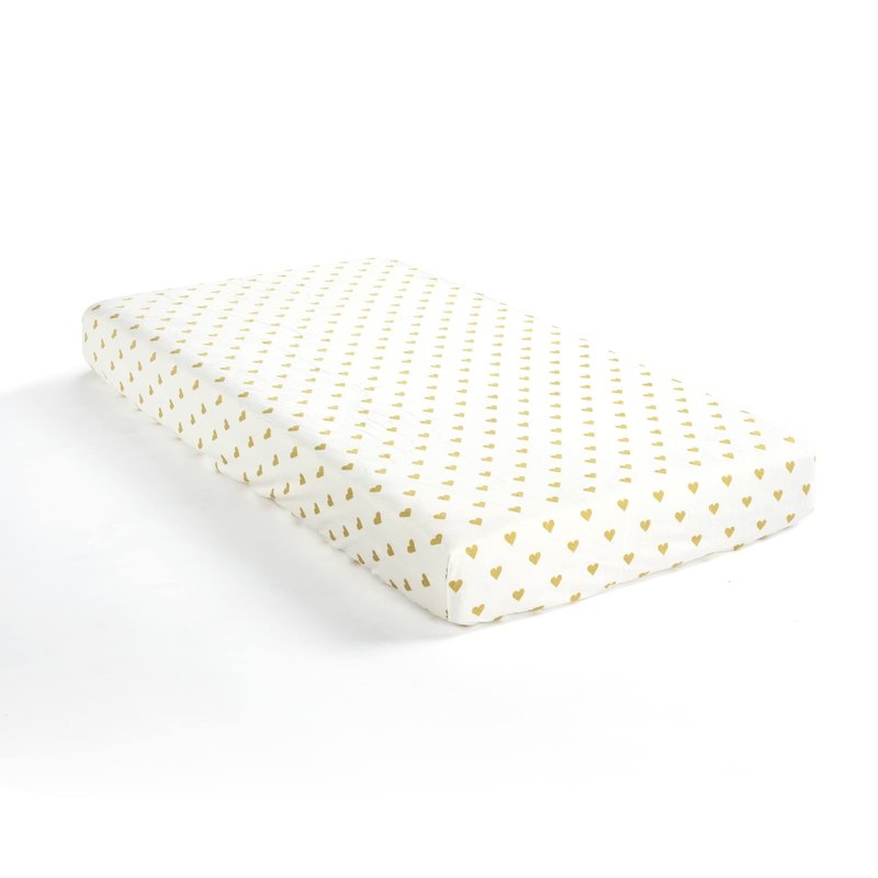 - The soft plush fabric and adorable heart print on this fitted crib sheet make this the perfect addition to your little one's nursery. This stylish pattern fits into many nursery themes and is a fun and chic piece to add to your nursery decor.