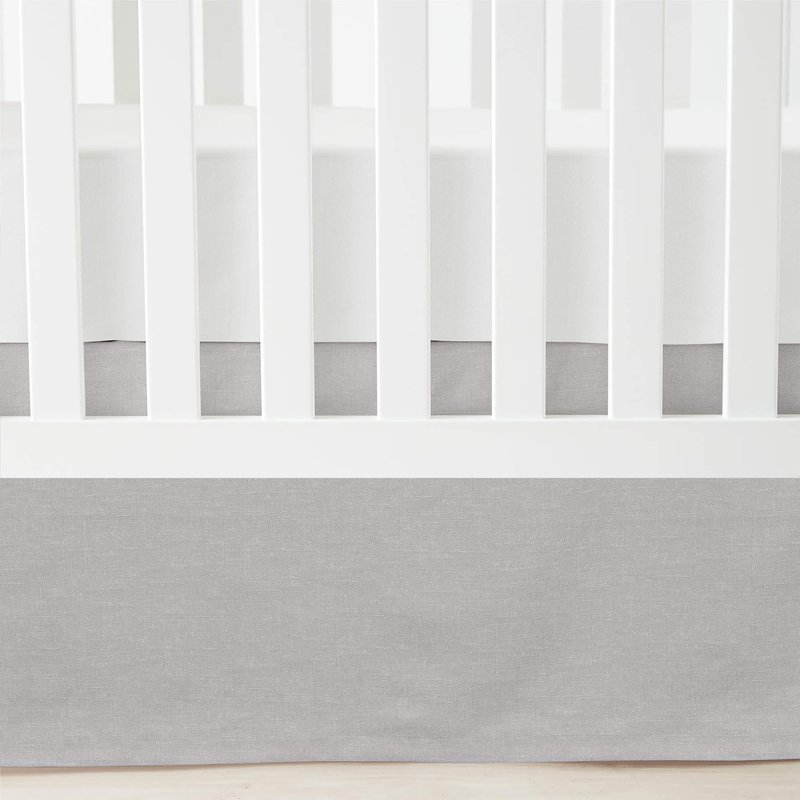 Lush Decor Baby Printed Linen Textured Solid Crib Skirt, Gray 52"L x 28"W + 16" Drop
