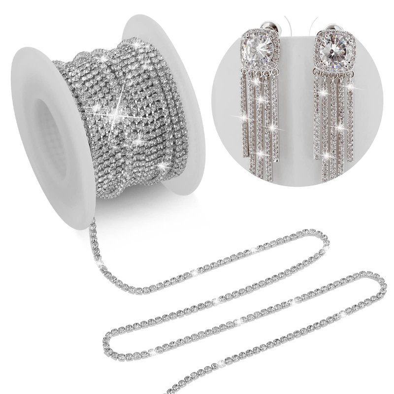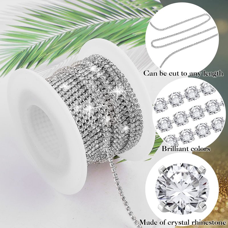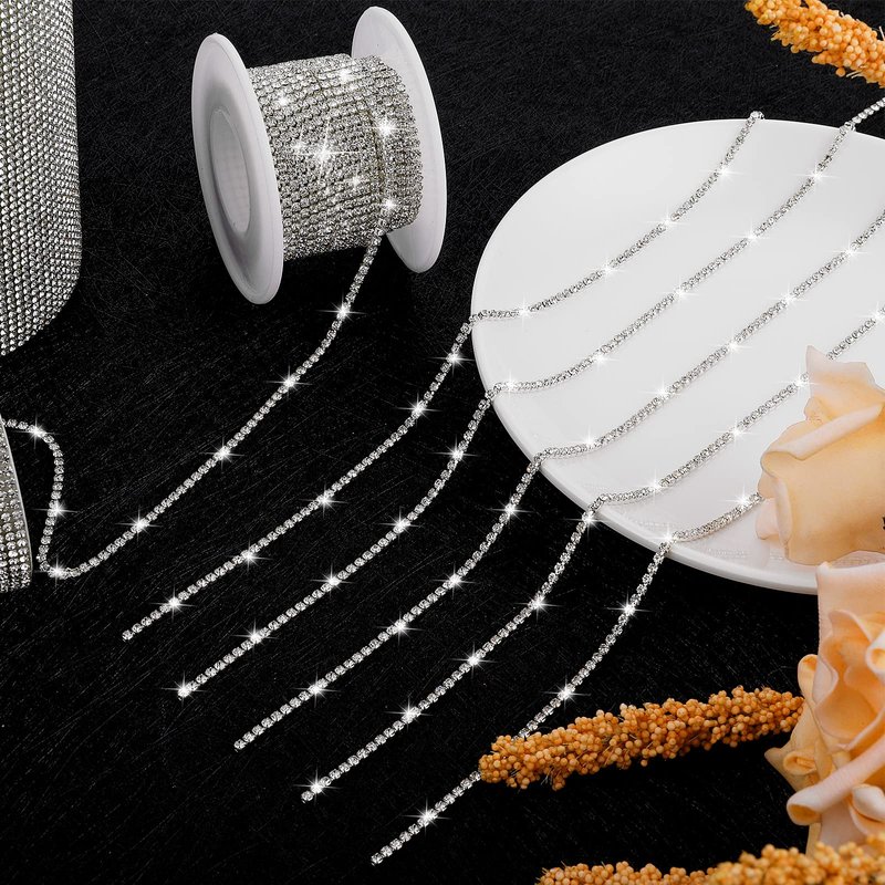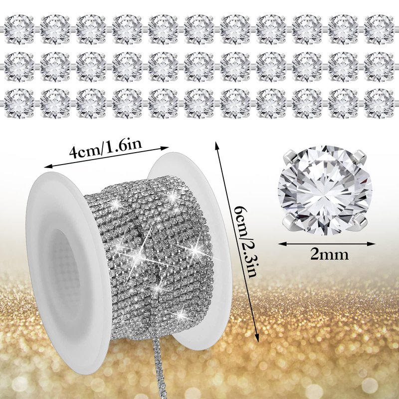 - ❤ Suitable Size: Rhinestone Chain Trim Total Length: 10 Yards (360Inch); Rhinestone Width: 2MM/0.08Inch. It can be cut to any length that you desired with scissors, sew on or glue to complete your craft DIY works, easy and convenient.