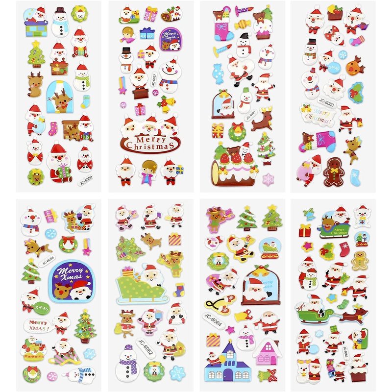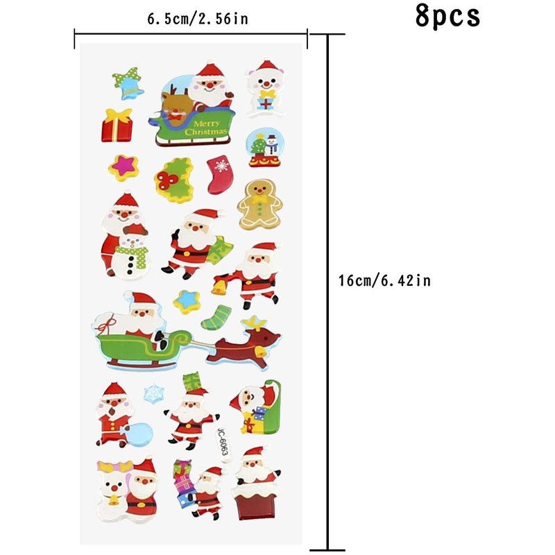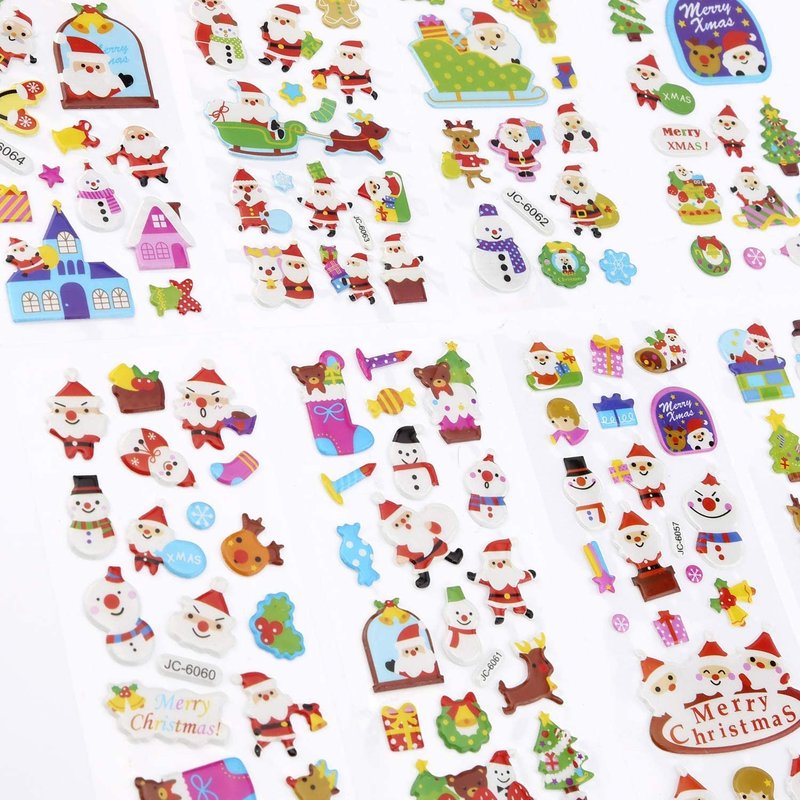 - 【Package Includes】8 packs of Christmas theme 3D sticker sheet, each pack possess around 20pcs stickers full of Christmas elements such as Christmas tree, Santa, reindeer, snowman gingerman, snowflakes and so on.