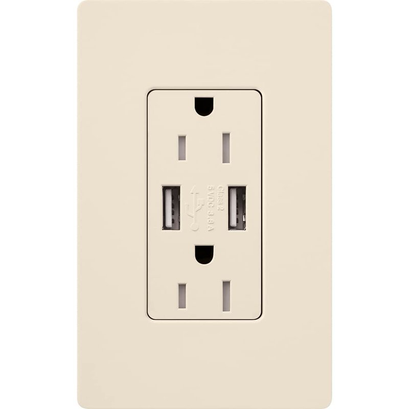 Lutron Claro 15 Amp USB Duplex Outlet | CAR-15-UBTR-LA | Light Almond