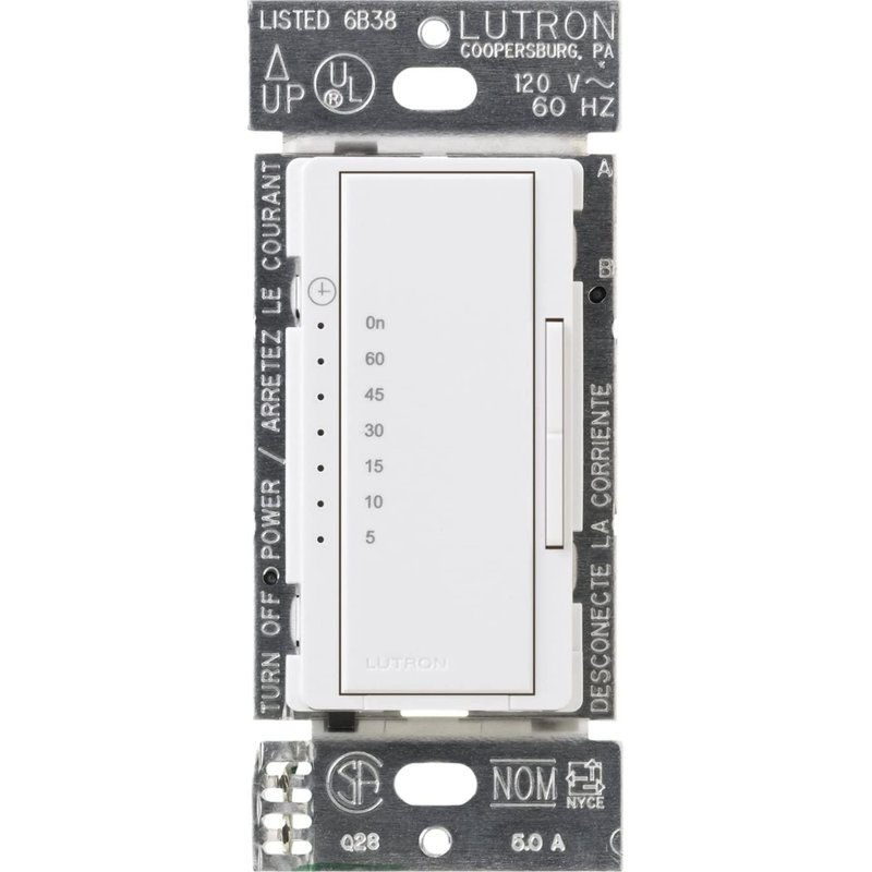 Lutron Maestro Countdown Timer Switch for Fans and Lights, 3A/150-Watt LED Bulbs, Single-Pole/Multi-Location | MA-T51MN-WH | White