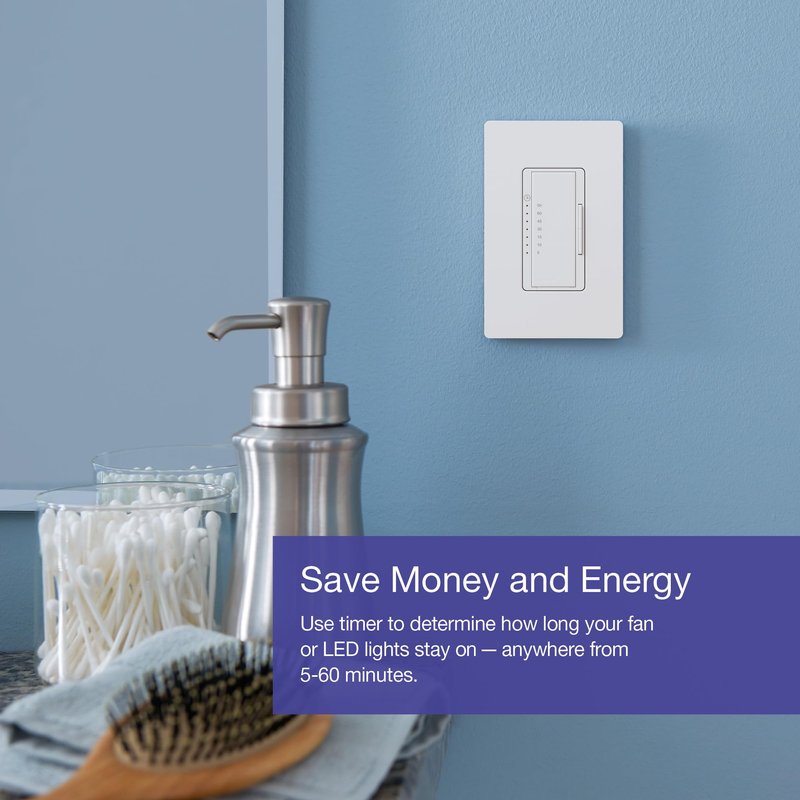 - Use the Maestro countdown fan timer switch for DC and high efficiency exhaust fans to save energy in bathrooms