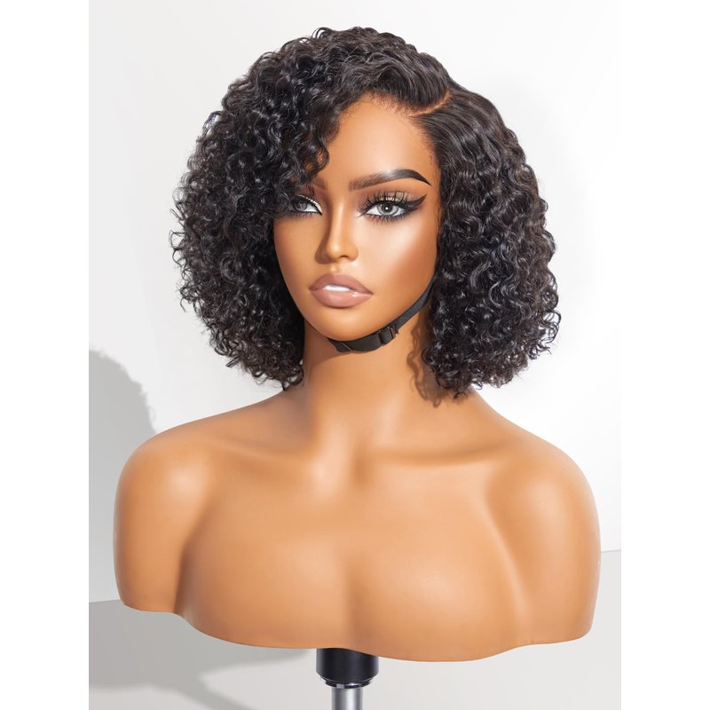 LUVME HAIR 10'' Glueless HD Curly Wig Human Hair Pre Cut Lace Wig, Real HD Lace Short Curly Bob Wigs 180 Density Human Hair Pre Plucked Bleached Knots Pre Cut