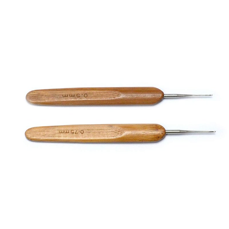 Luwigs Dreadlocks Crochet Hooks for Hair 2pcs/Set (0.5mm+0.75mm) Bamboo Handle Locs Crochet Needle Steel Crochet Hook Lock for Braid Craft