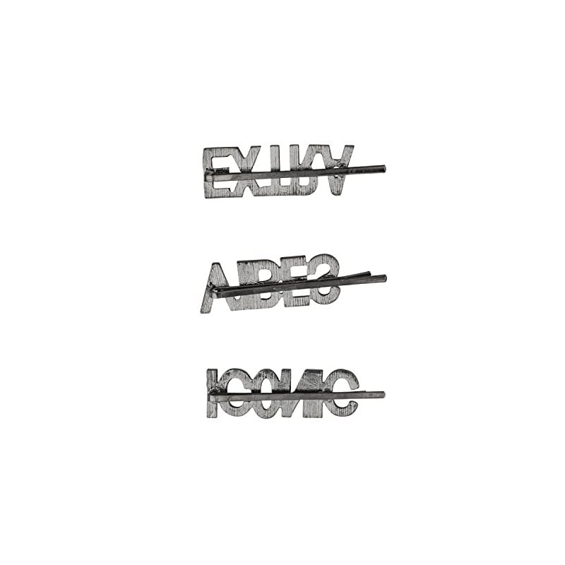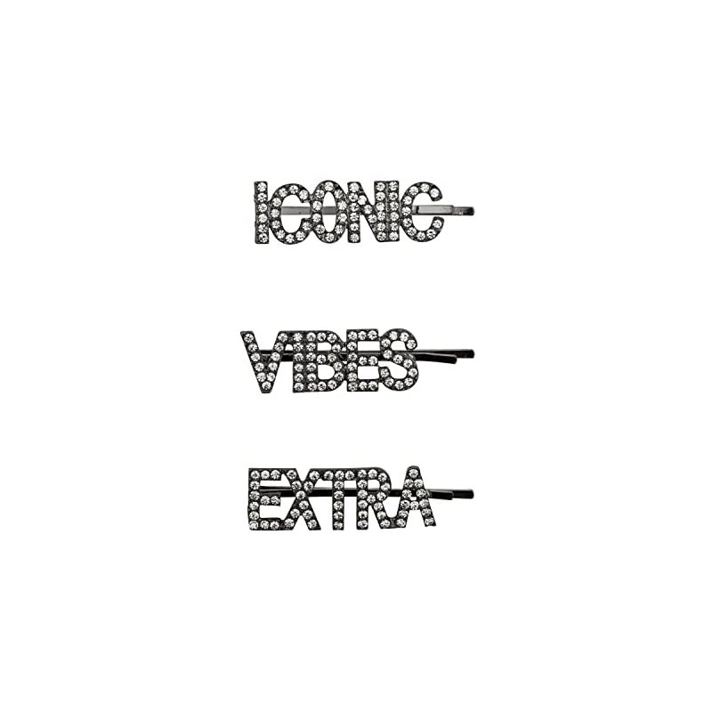 Lux Accessories Set (3pc) ICONIC VIBES EXTRA Words Clear Crystal Rhinestones Hem Black Hair Pins