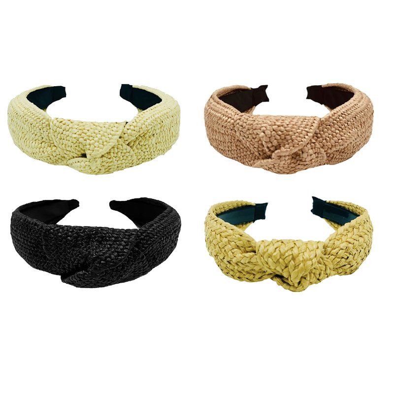 LUX TRENDS Set of 4 Straw Raffia Top Knot Headbands for Women Girls Hair Braided Headbands Knotted Turban Boho Wide Thick Top Knot Beach Summer Bohemian Hairbands