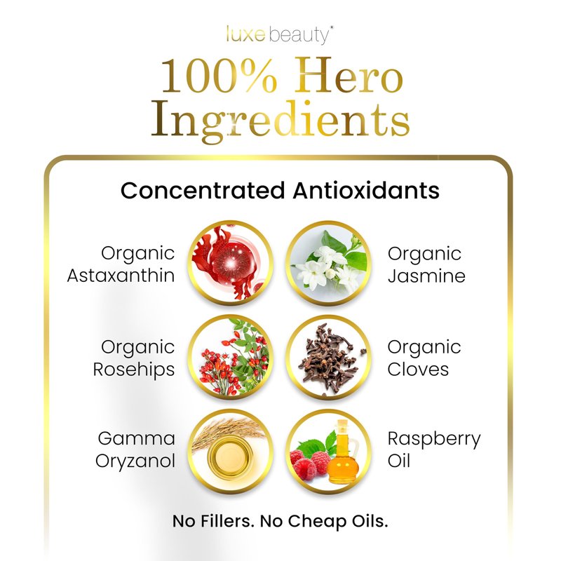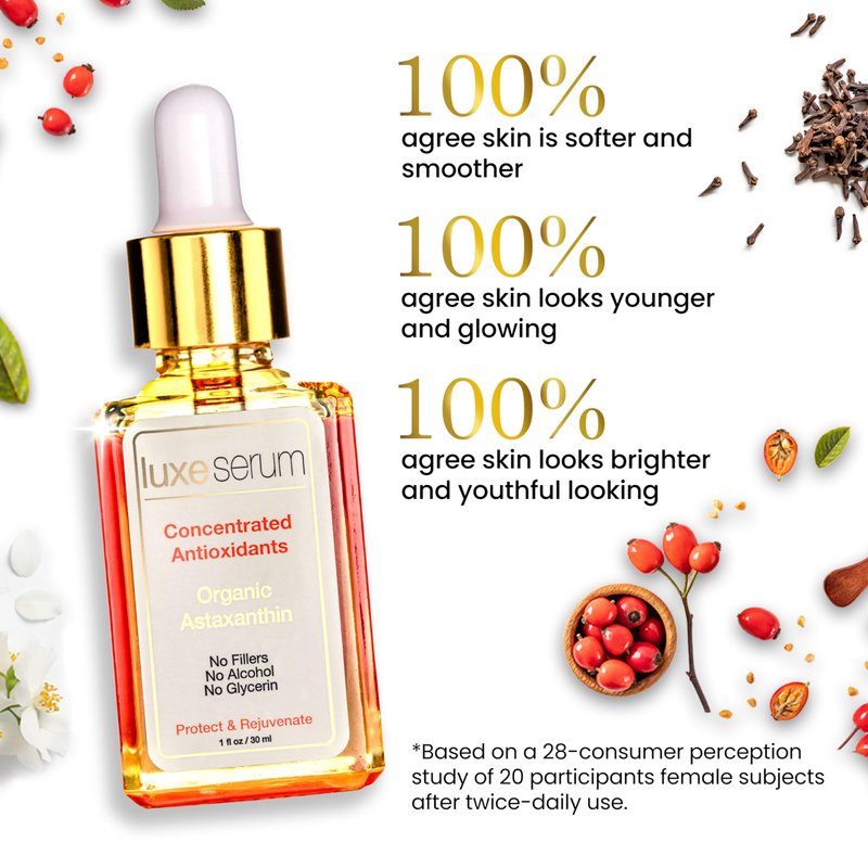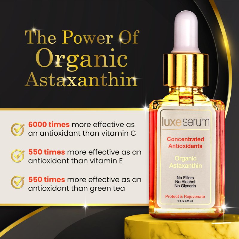 - MADE WITH ORGANIC ASTAXANTHIN - Luxe Beauty Concentrated Antioxidant Serum contains a powerful antioxidant called Astaxanthin sourced from organic alga and cultivated in a controlled natural environment.
