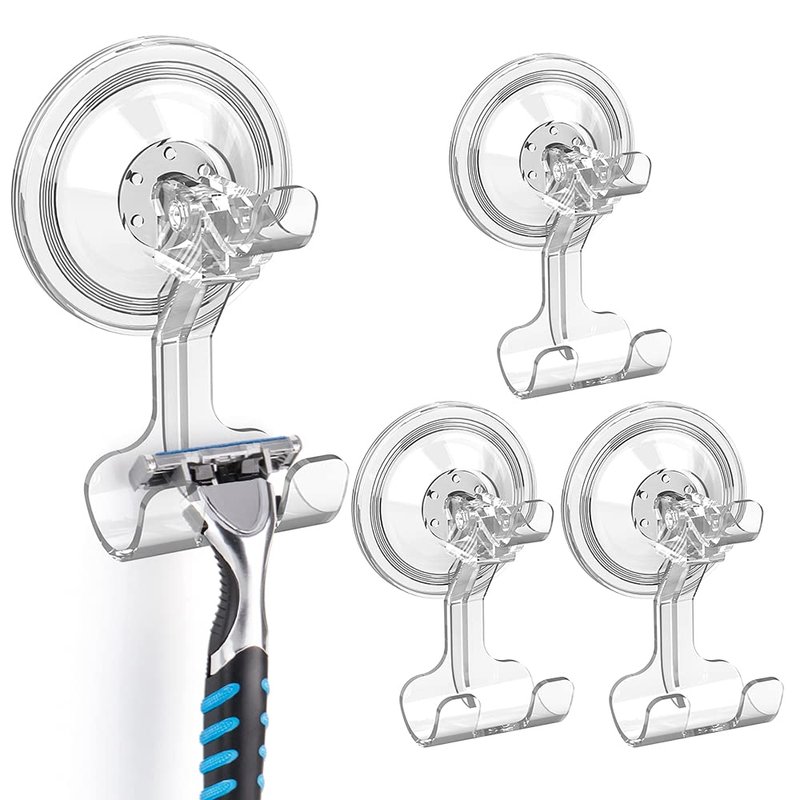 - 【STABLE AND DURABLE HOOKS】Our shower razor holder are made of high-strength transparent plastic PVC material and feature high-tech locking technology, making them both environmentally friendly and aesthetically pleasing. Plus, our shower suction hooks are incredibly powerful and stable, so you never have to worry about them falling off. NOTE:The maximum load-bearing capacity of the hook is 3KG.