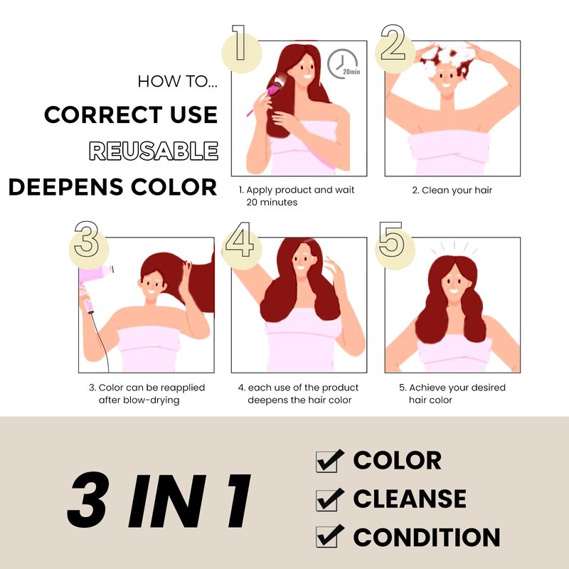 - Easy To Use: After washing your hair, wipe it until it is half dry, apply proper amount of hair color + depositing conditioner to your hair, leave for 15-20 minutes, and rinse thoroughly