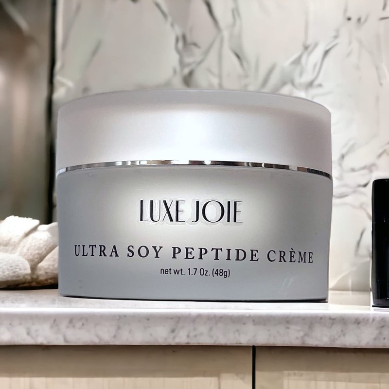 LuxeJoie Ultra Soy Peptide Creme With Matrixyl Peptides Alpha Lipoic Acid Anti-Aging Face Moisturizer Wrinkle Fine Line Reducer For Dry Mature Skin 1.7 Ounce