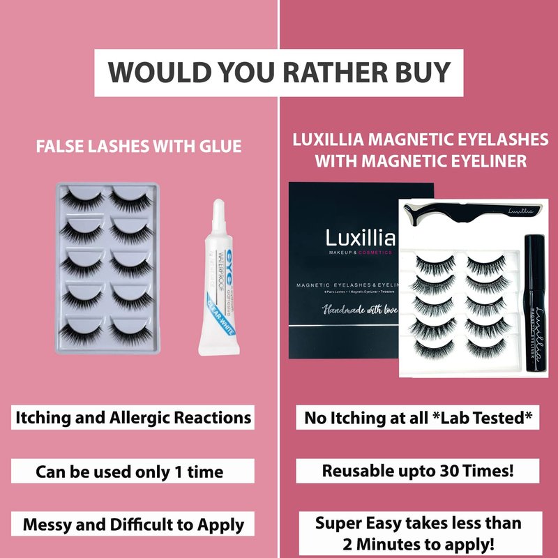 Luxillia Magnetic Eyelashes with Eyeliner 7 Piece Set, Most Natural Looking Magnetic Lashes Kit with Applicator, Best 8D, 3D Look, Reusable Fake Eye Lash, No Glue, Strongest Waterproof Liquid Liner