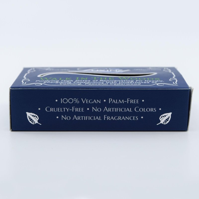 HANDCRAFTED. We make our cold processed artisan soaps by hand in small batches using all-natural plant-based sustainable ingredients. Our commitment to being consciencious of our footprint means we only use shea butter, coconut, and olive oil in the production of our soap, never palm oil. Each bar is boxed to avoid using plastics. Each soap is hand poured and cut so colors, size and weight may vary, approximate bar size is 4 oz.