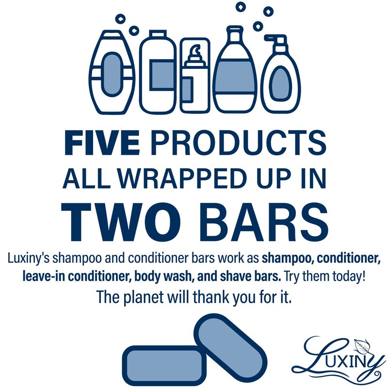 - REDUCE PLASTIC WASTE. Luxiny's shampoo bars each equal two bottles of liquid shampoo, and you will get between 50, and 75 uses out of each eco-friendly bar. With each bar purchased, you will keep two plastic bottles from ending up in a landfill. With this easy transition to a greener life, your hair will look healthy and beautiful while helping the planet. ition to a greener life, your hair will look healthy and beautiful while helping the planet.