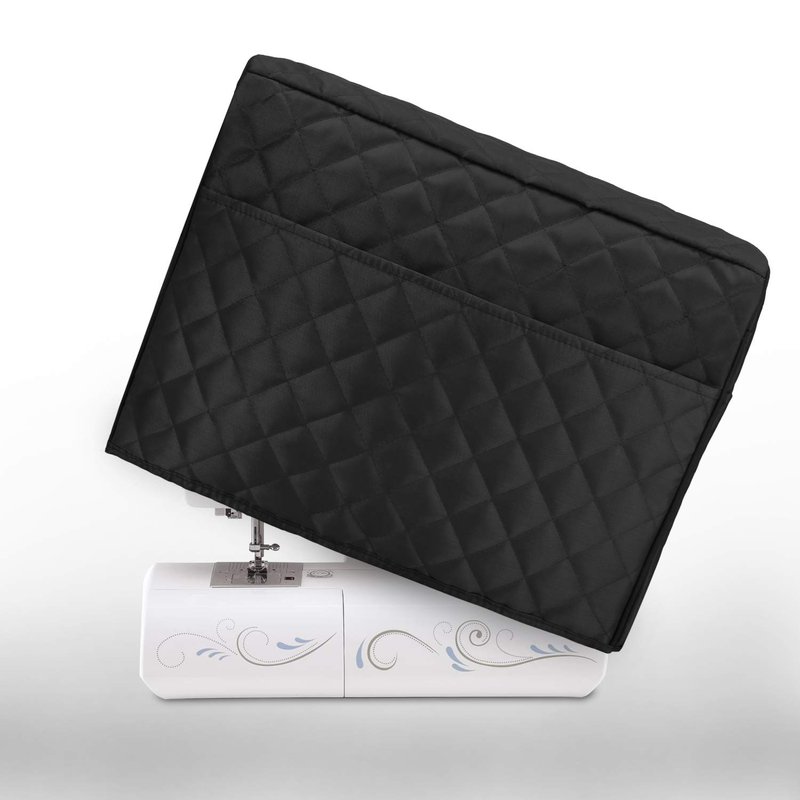 Luxja Dust Cover for Sewing Machine, Sewing Machine Cover with Pockets for Extra Accessories (Compatible with Brother and Singer), Black (Quilted Fabric)