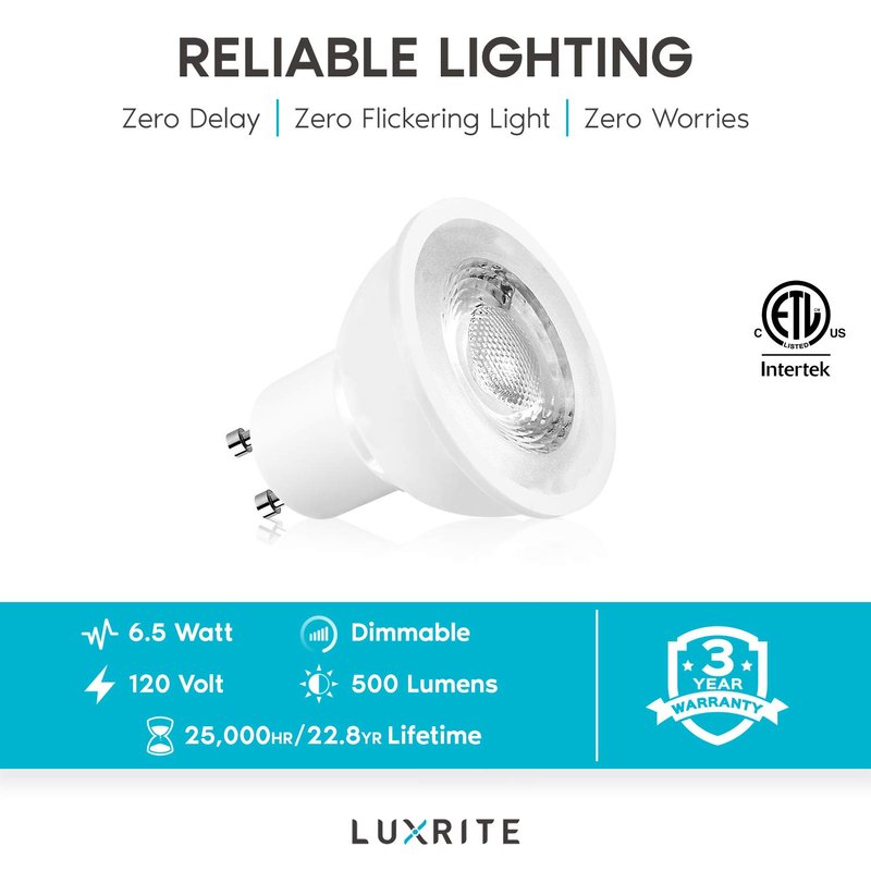 Luxrite MR16 LED Lighting - Offering you the perfect replacement to your standard halogen mr16 lighting. These mr16 gu10 LED bulbs will cut down your energy costs while still providing optimal lighting in all of your applications. Each 120V mr16 bulb can be utilized in a number of lighting fixtures for landscapes, kitchen, living room, office, home, accent lighting, and even in enclosed fixtures. Each light bulb is dimmable so you can control your lighting at all hours of the day. Get continuous light with no interruptions so you have light when you need it. Zero flickering, zero delay, zero worries.