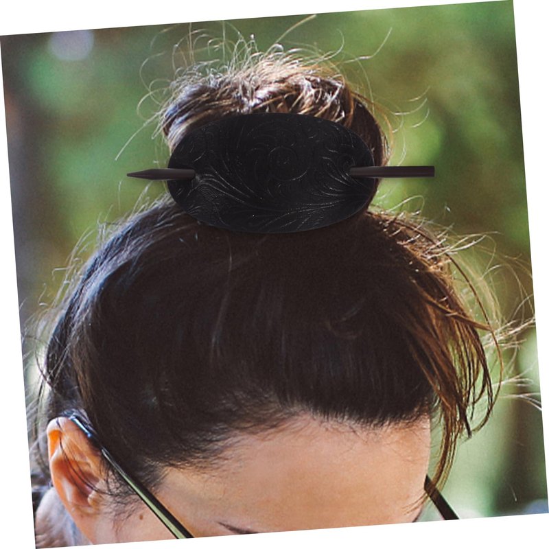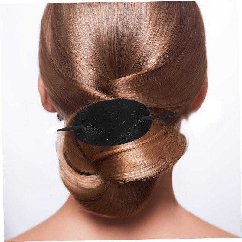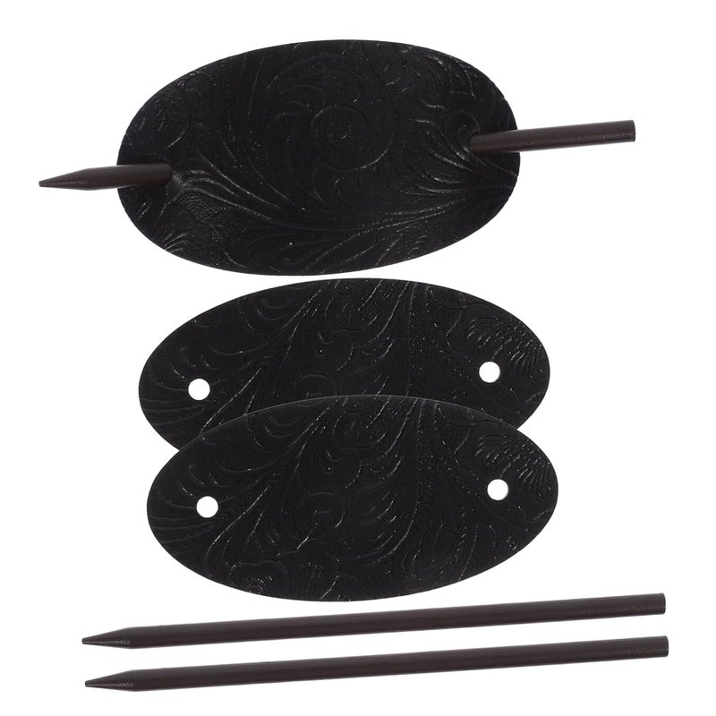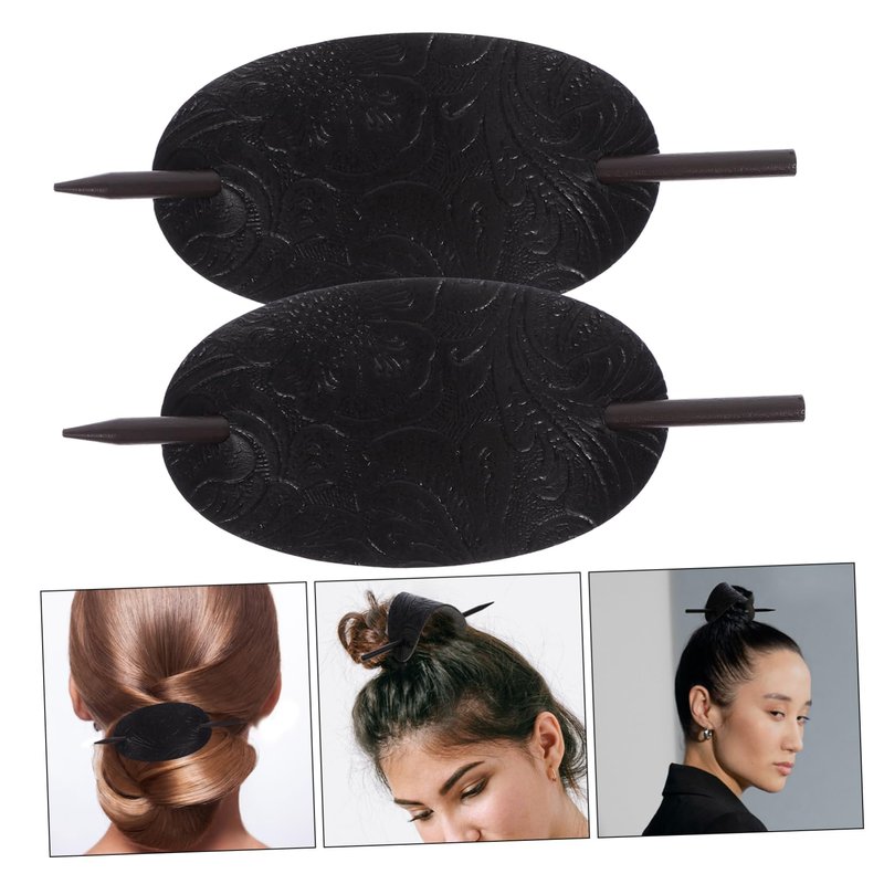 Luxshiny Hair Sticks 3pcs Leather Hair Barrette with Stick Ponytail Holder Pin Hair Tie Slide Oval Shape Hair Pins Hair Stick Clip Hair Accessories for Women Girls Hair Holder