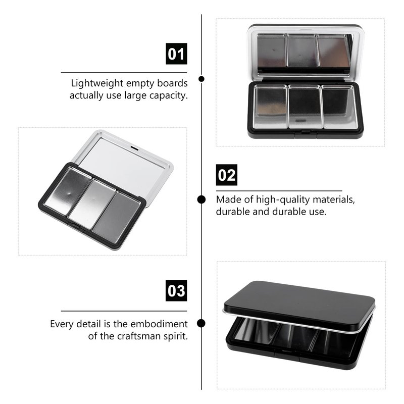 - The empty eyeshadow case for lipstick, eyeshadow, blush, eyebrow powder, pressed & loose powder, etc.