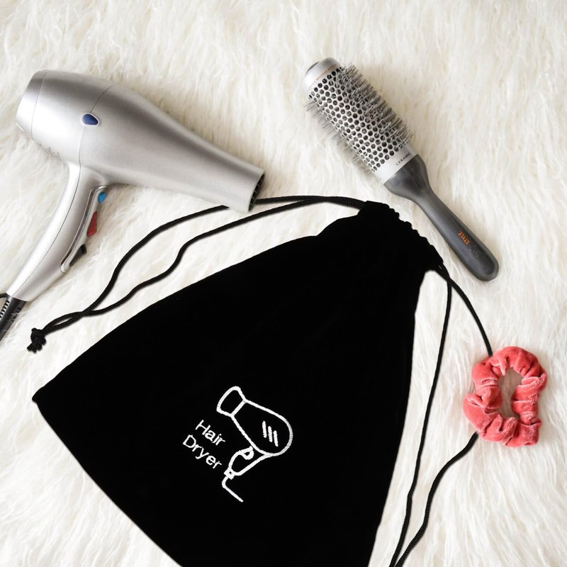 -Drawstring Hairdryer Bags Color: Black.