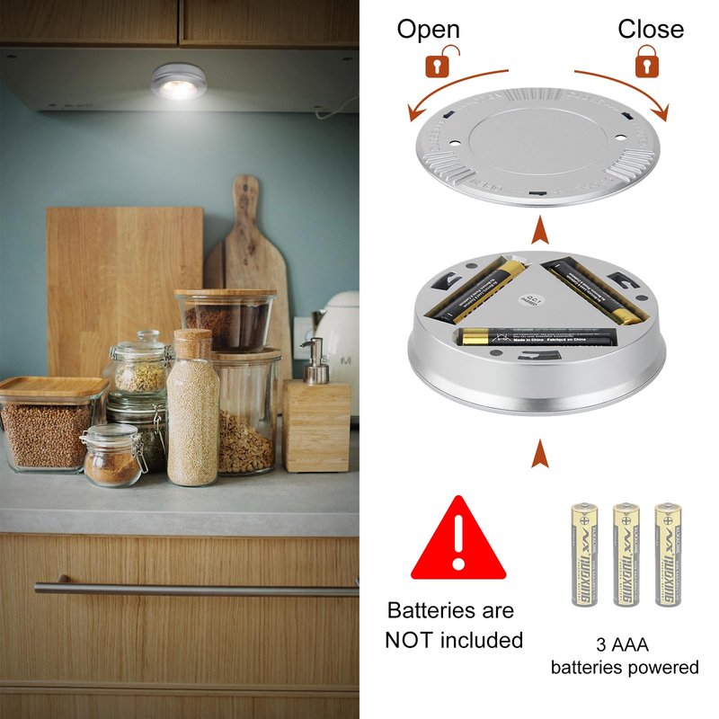 - [Battery Powered]: Powered by 3 AAA batteries (NOT included) per tap light, no plugs or wires required. Very suitable for using in a small area where it’s not convenient to install wires.