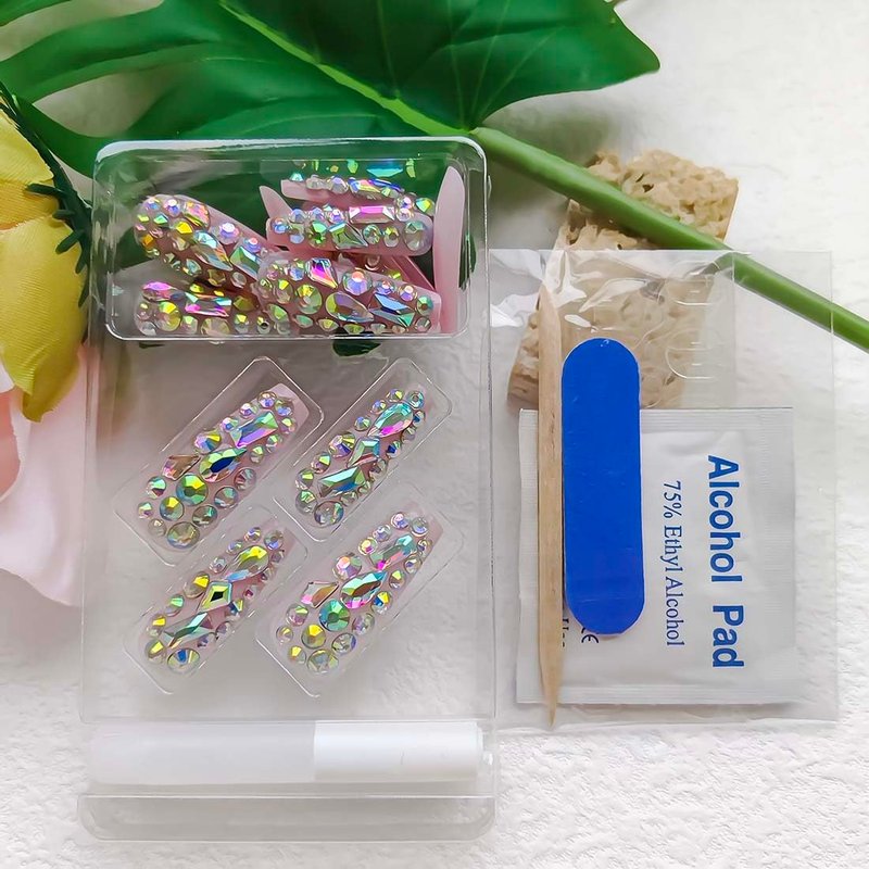 - Health and Durable:French press on nails AB Rhinestones Jewelry Gems Full Cover Shine Reusable Fake Nails accessories are made of acrylic, it is environmentally protection, non-toxic, odorless.Not easy to break They are durable and can last for 1-3 weeks.