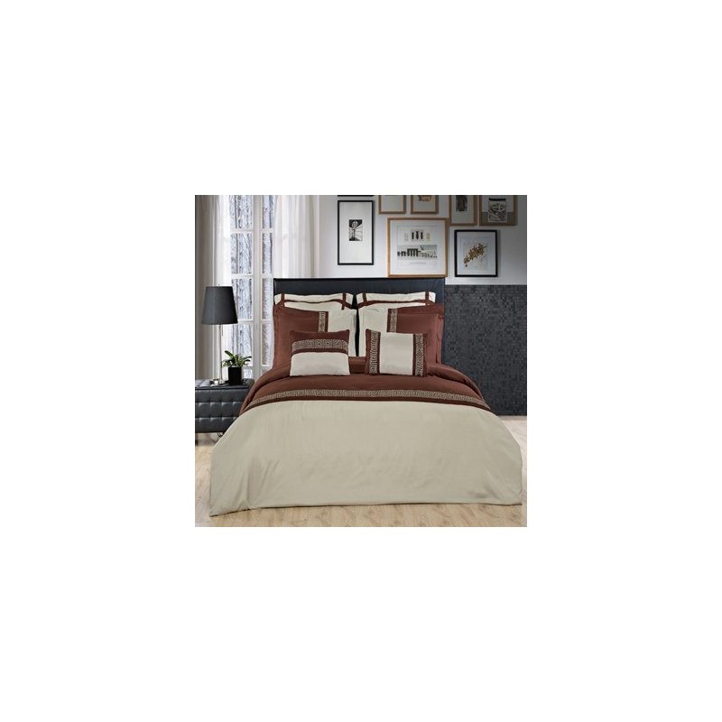 Luxurious Astrid Sage & Chocolate Embroidered 7 Piece (7PC) Queen Size Comforter Cover (Duvet Cover) Set, Ultra Soft Single Ply Wrinkle Free Brushed Microfiber.
