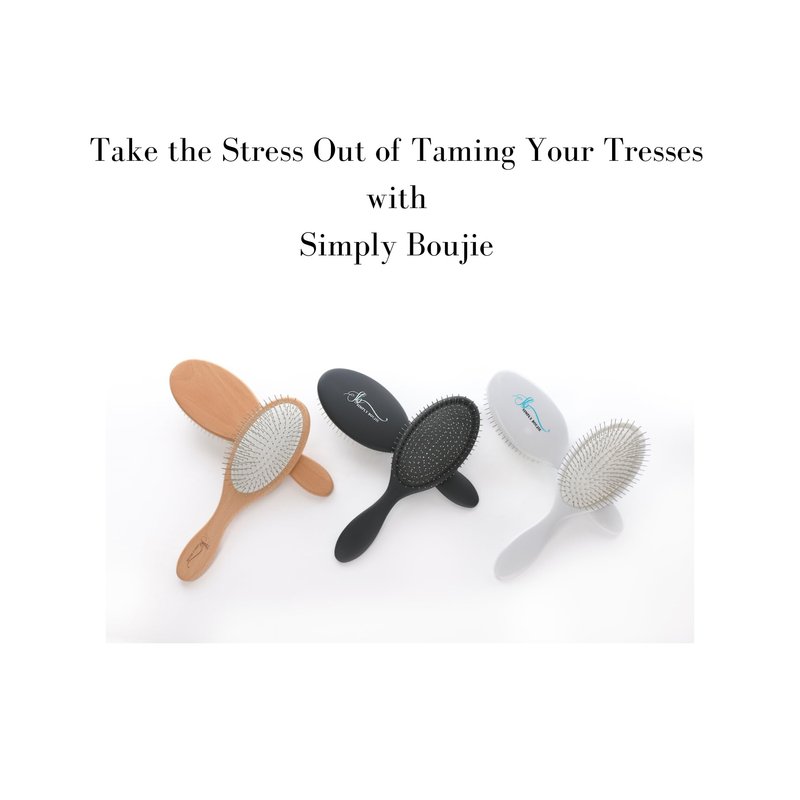 - A Gentle Touch for All Hair – Enjoy salon-level treatment without stressing about breakage. Your Simply Boujie paddle brush is for thick hair or fine, wigs or extensions, and curly or straight locks.