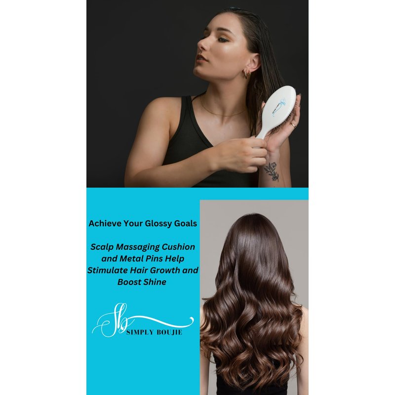 Frustrating tangles seem impossible to brush through with an ordinary hair brush for curly hair or fine hair. This leaves you cringing as you rip through knots just to fix your hair. Introducing the luxury detangler brush for curly hair and straight hair by Simply Boujie. It loosens the toughest knots without pain and tears thanks to the innovative all-metal pins without caps and flexible rubber cushion.