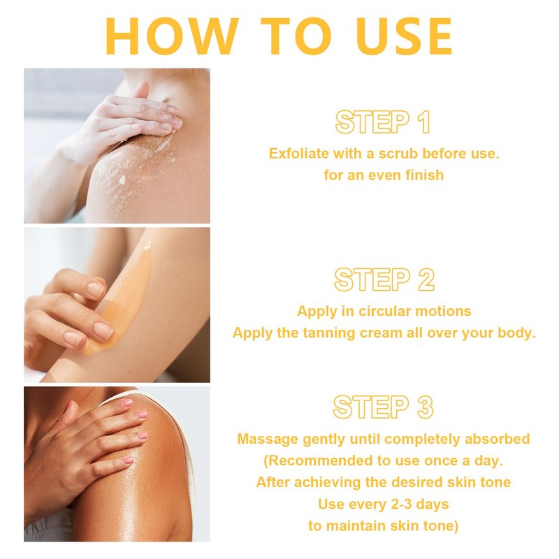 - 【Easy Application】Apply brown tanning accelerator cream to clean, dry skin before sun exposure, massaging gently for optimal absorption. Caution: Avoid midday sun exposure.