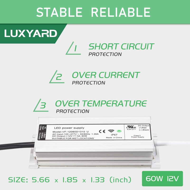 - LED Transformer Safety: Automatic protection for short circuit, overload, over-temperature, over-voltage.CE\UL certified RoHS/REACH compliant