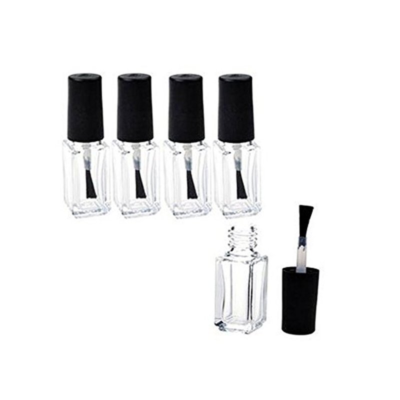luzen 5 ML Empty Refillable Clear Square Shape Glass Nail Polish Bottles with Black Brush Cap,Pack of 5 Pieces