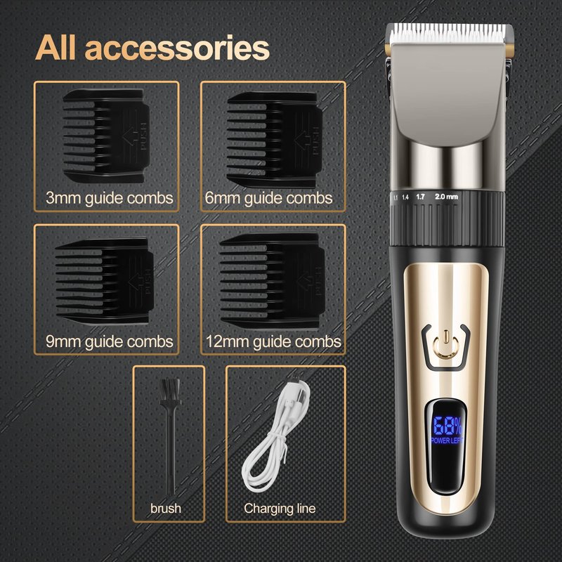 - ☞ Rechargeable & LED Display - Build-in 1200mAh fast charging and lithium-ion battery offer 120min long-lasting clipping time after a 2-hour fully charged. The LED display of the hair clippers clearly shows remaining percentage of battery.