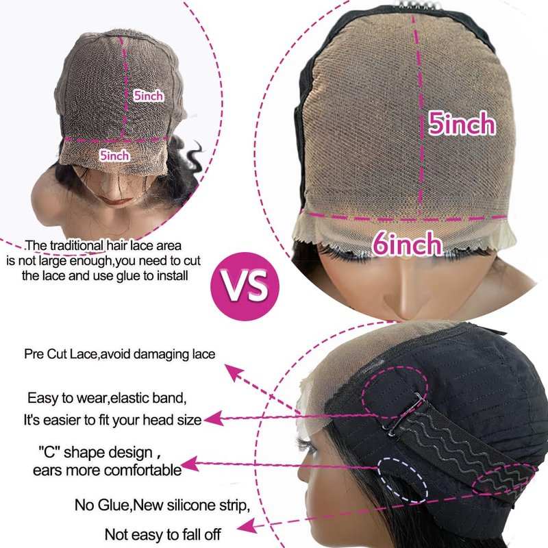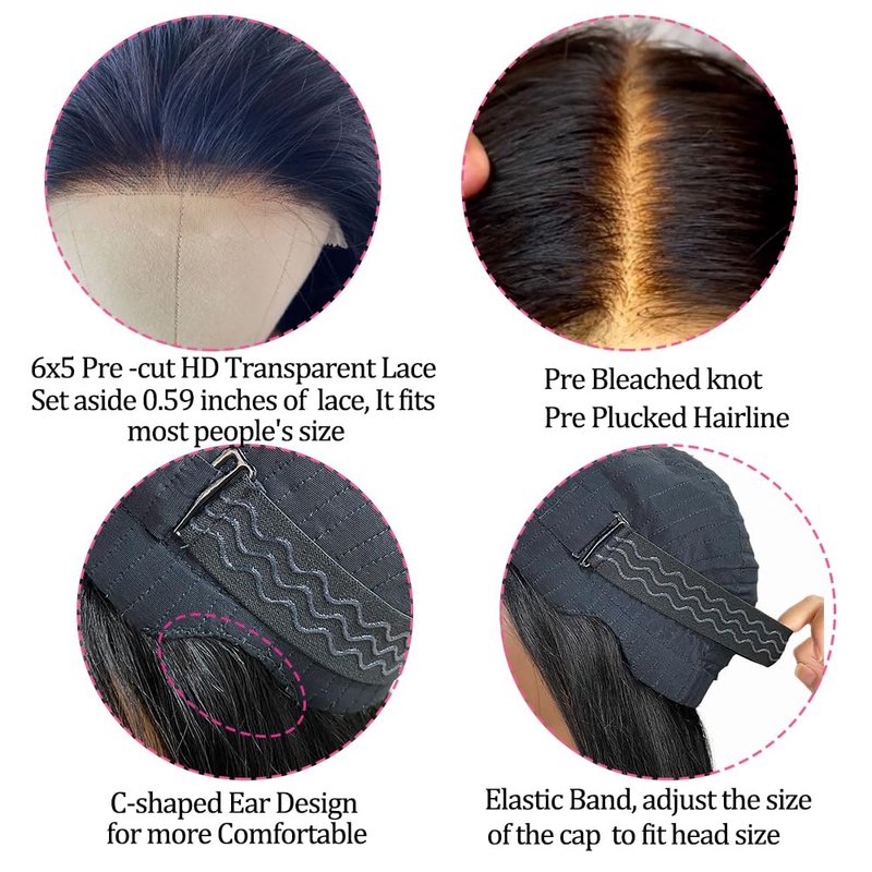 - 5.Suitable Occasions-wear and go glueless wigs are suitable for your birthday party, graduation ceremony, wedding, vacation.6x5 glueless wigs human hair pre plucked pre cut could be used as gifts for family and friends.