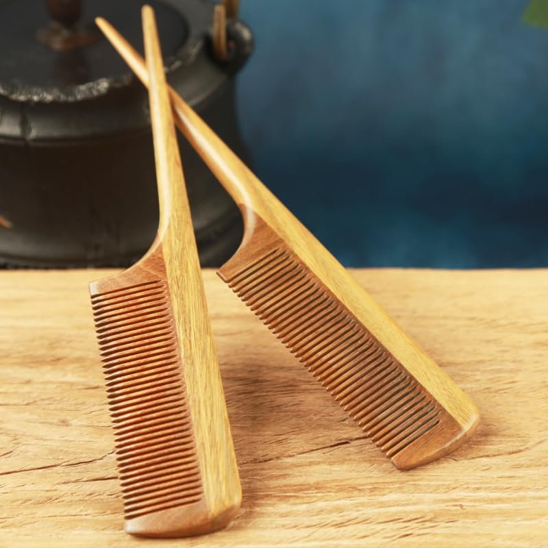 LWBTOSEE Anti-Static Natural Sandalwood Combs Portable Hair Salon Wood Comb Rat Tail Brush Hairdressing Styling Tool Hair Care Hair Comb